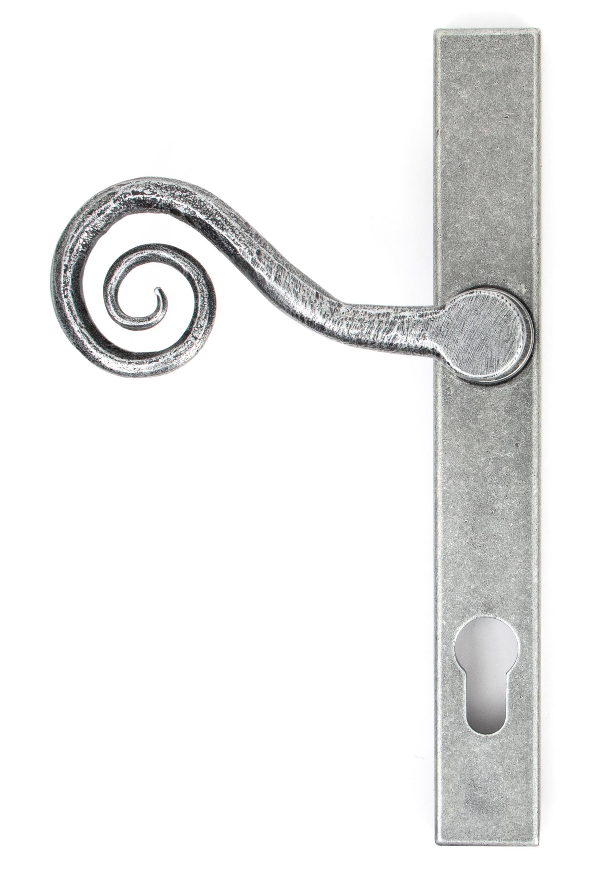 Our talented Blacksmiths heat and delicately hammer a thin piece of mild steel to form the curly, Monkeytail shape of this lever handle. One of our most traditional designs.