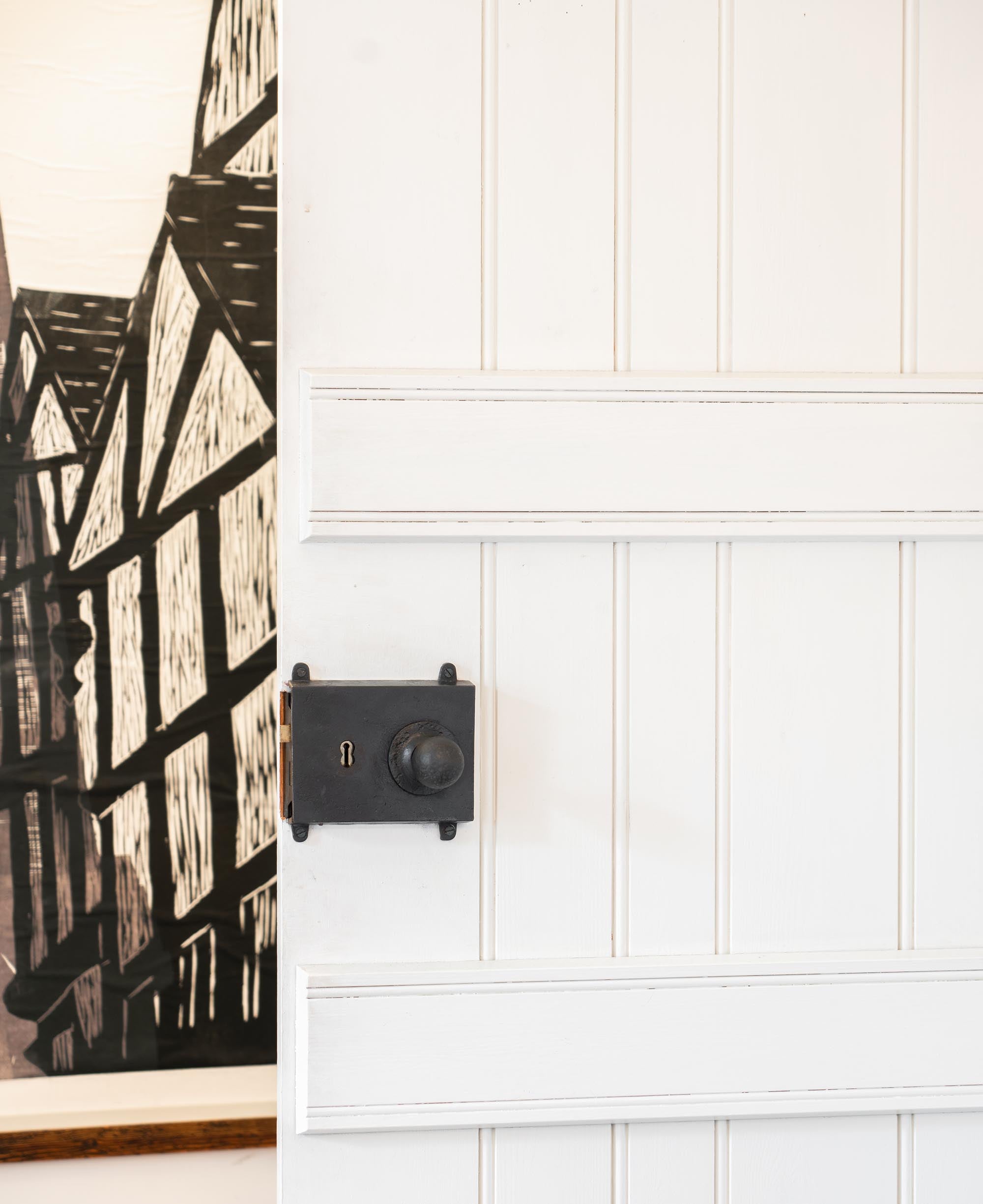 Rim locks are fitted to the surface of the door rather than being morticed in, along with a surface mounted keep that should be fitted to the door frame.
