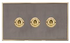 Executive Range-Satin Black Nickel & Brass-3 Gang Toggle Switch